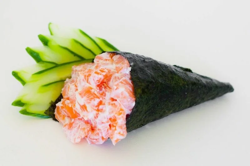 Um temaki de sua escolha (menos o temaki roll) + 5 unidades de hot rolls de salmão. (Serve 1 pessoa)